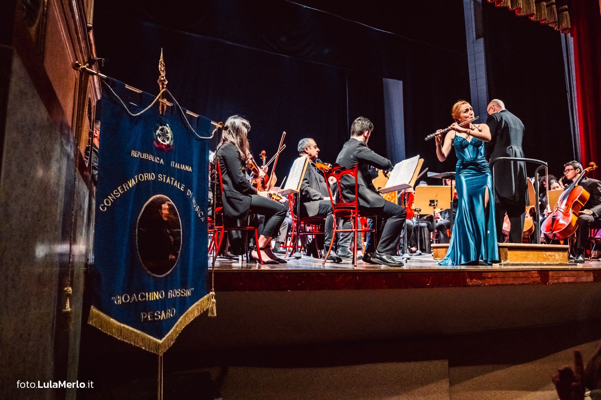 Dal sito di Uniurb: “L’Orchestra del Conservatorio, diretta dal M° Luca Ferrara, propone il tradizionale concerto per Santa Cecilia con la celebre Sinfonia n. 1 in do maggiore Op. 21 di L. van Beethoven e due concerti solistici eseguiti dalle giovani soliste Ekaterina Maliugina (flauto) e Benedetta Nasini (violino). Nella prima parte del programma Maliugina, vincitrice della XIX edizione del Premio delle Arti, eseguirà il Concerto in re minore per flauto e archi di Carl Philipp Emmanuel Bach; Benedetta Nasini si cimenterà invece nel Concerto in la maggiore per violino e orchestra K 219 di Wolfgang Amadeus Mozart“.